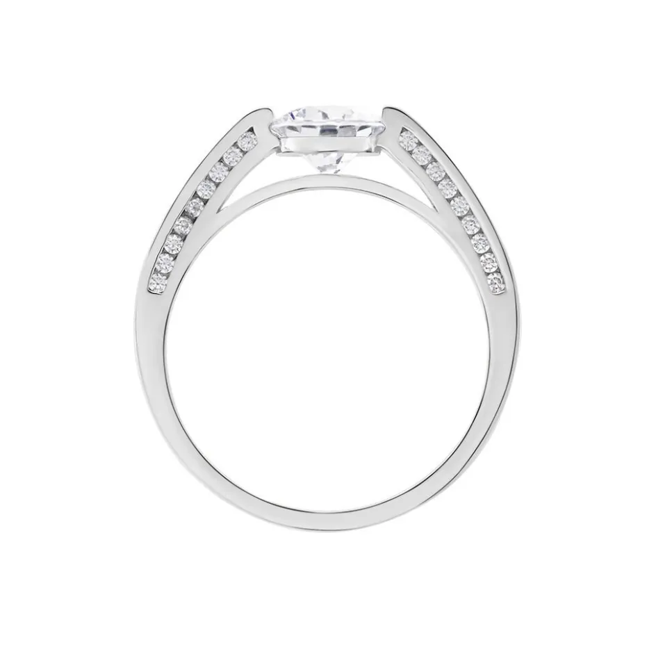 Bague Argent Blanc 925/1000 1 Anneau Oxydes De Zirconium Sertis Rail + 1 Anneau Oxydes De Zirconium