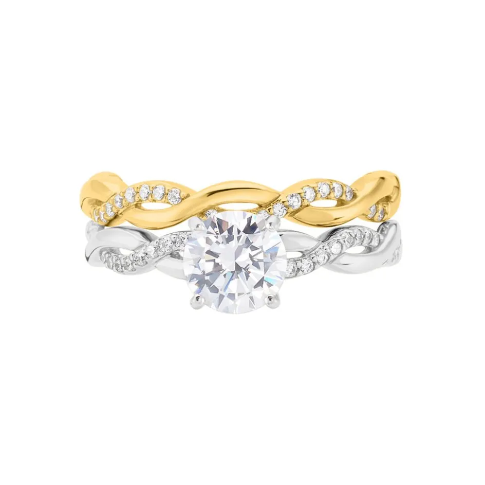 Bague Argent Bicolore 925/1000 Double Rang Croisée Oxyde De Zirconium