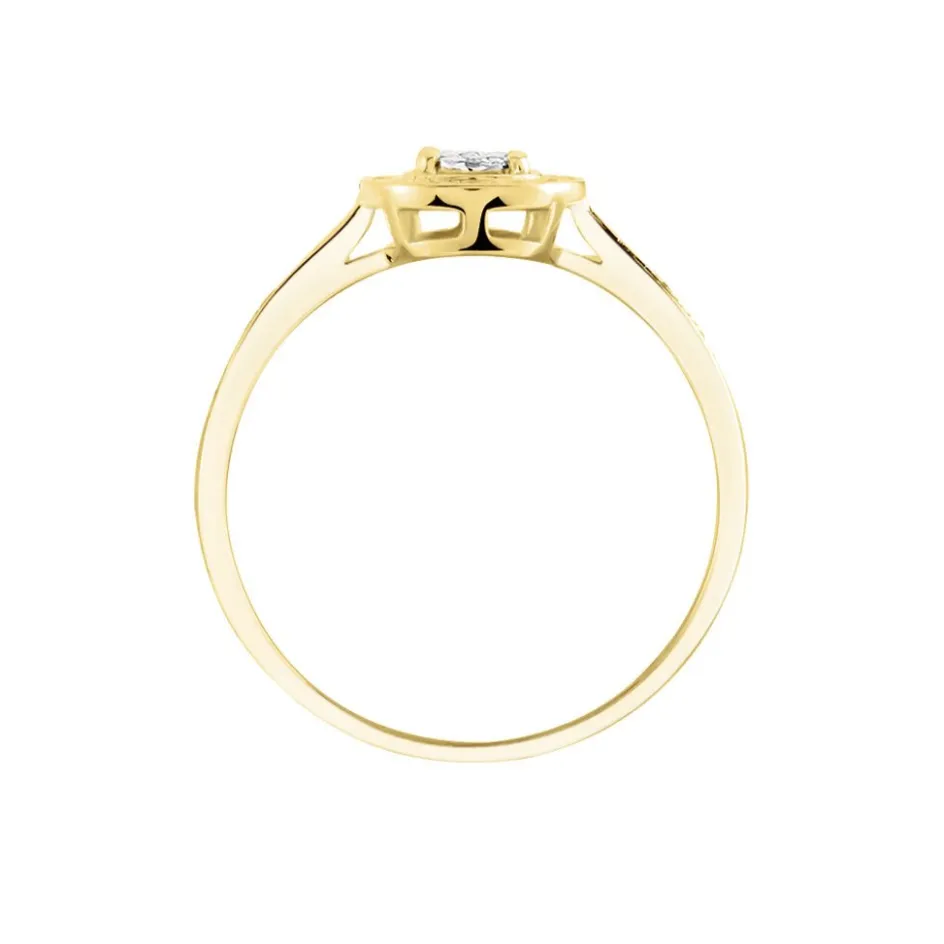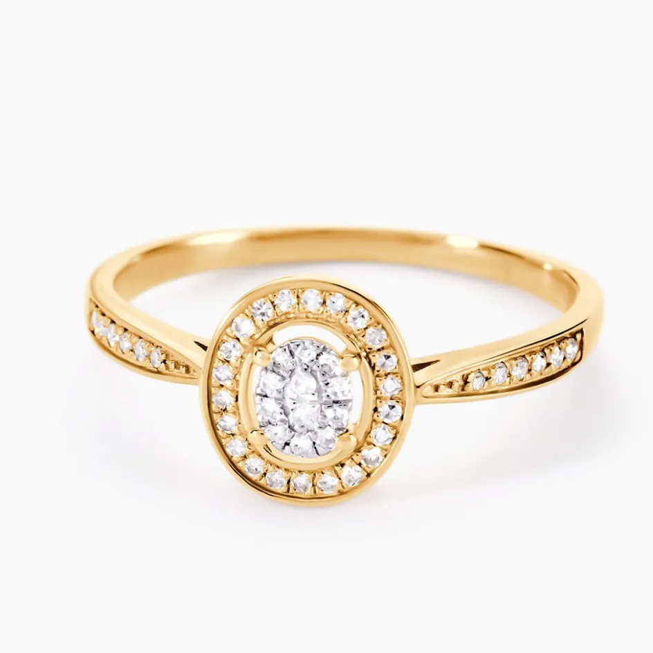 Bague Or Jaune 375/1000 Multipierre Accompagne Pavage Diamants