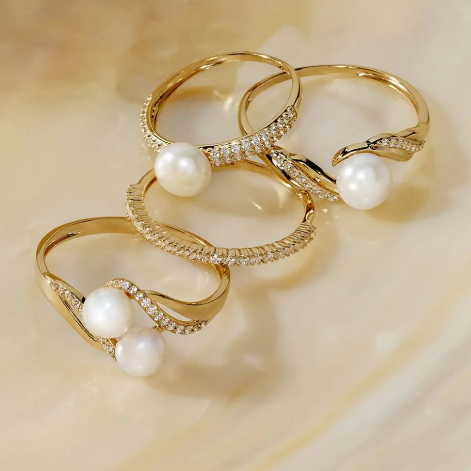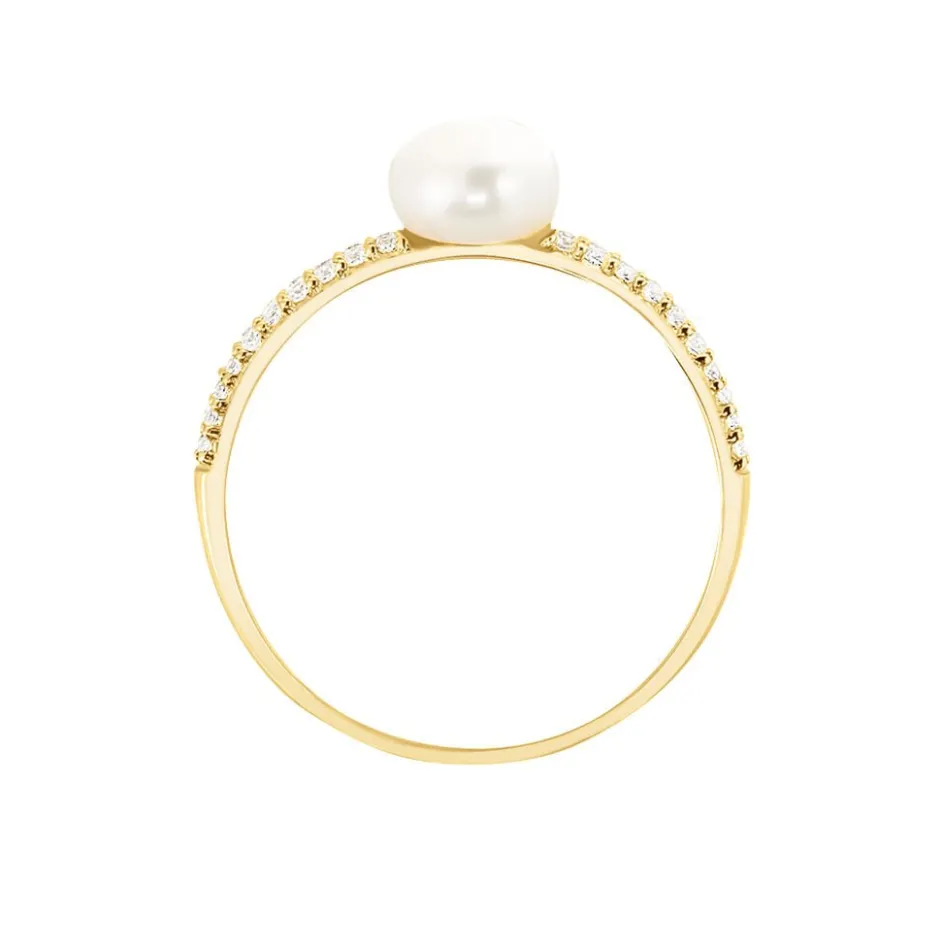 Bague Or Jaune 375/1000 Perle De Culture Forme Boutton 6mm-6.5mm Oxydes De Zirconium
