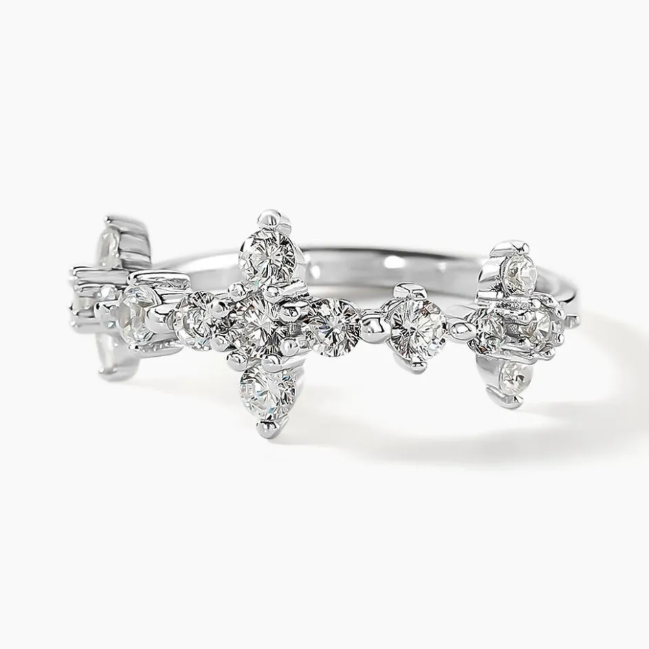 Bague Argent 925/1000 Floral Oxydes De Zirconium