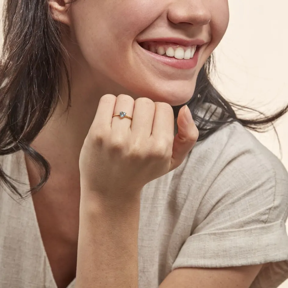 Bague Or Jaune 375/1000 Coeur Topaze Bleue
