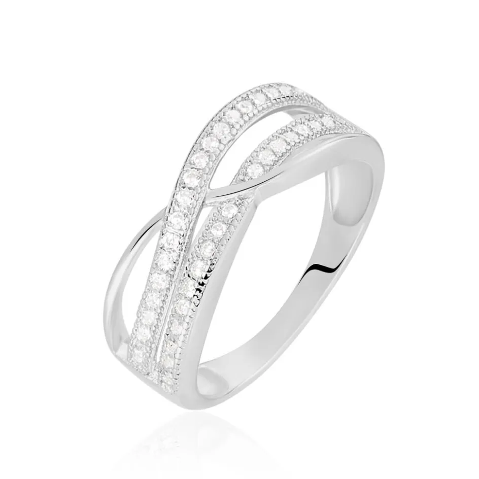 Bague Argent Blanc 925/1000 Multirangs Croises Ajoures Oxydes De Zirconiummicro Serti