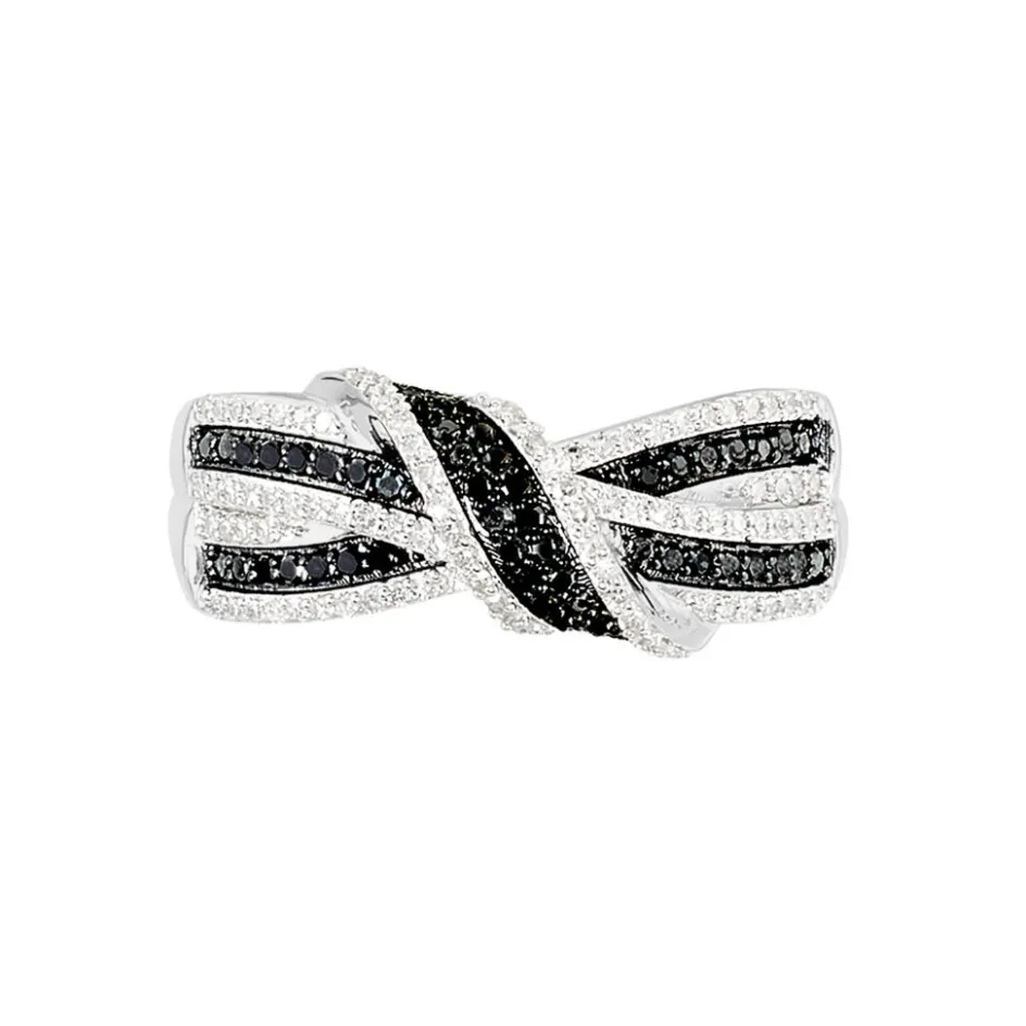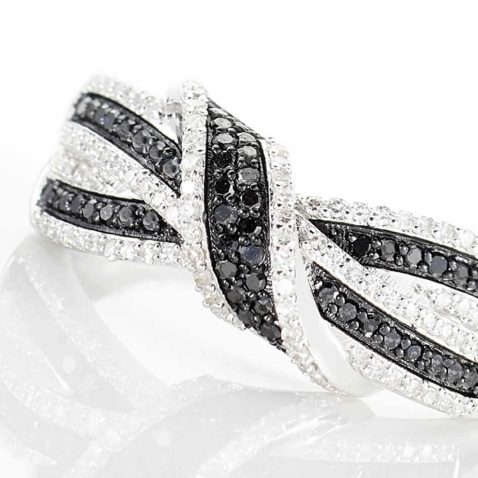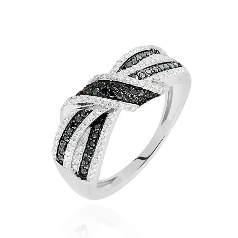 Bague Or Blanc 375/1000 Forme N艙ud Diamants Noirs Et Diamants Blancs