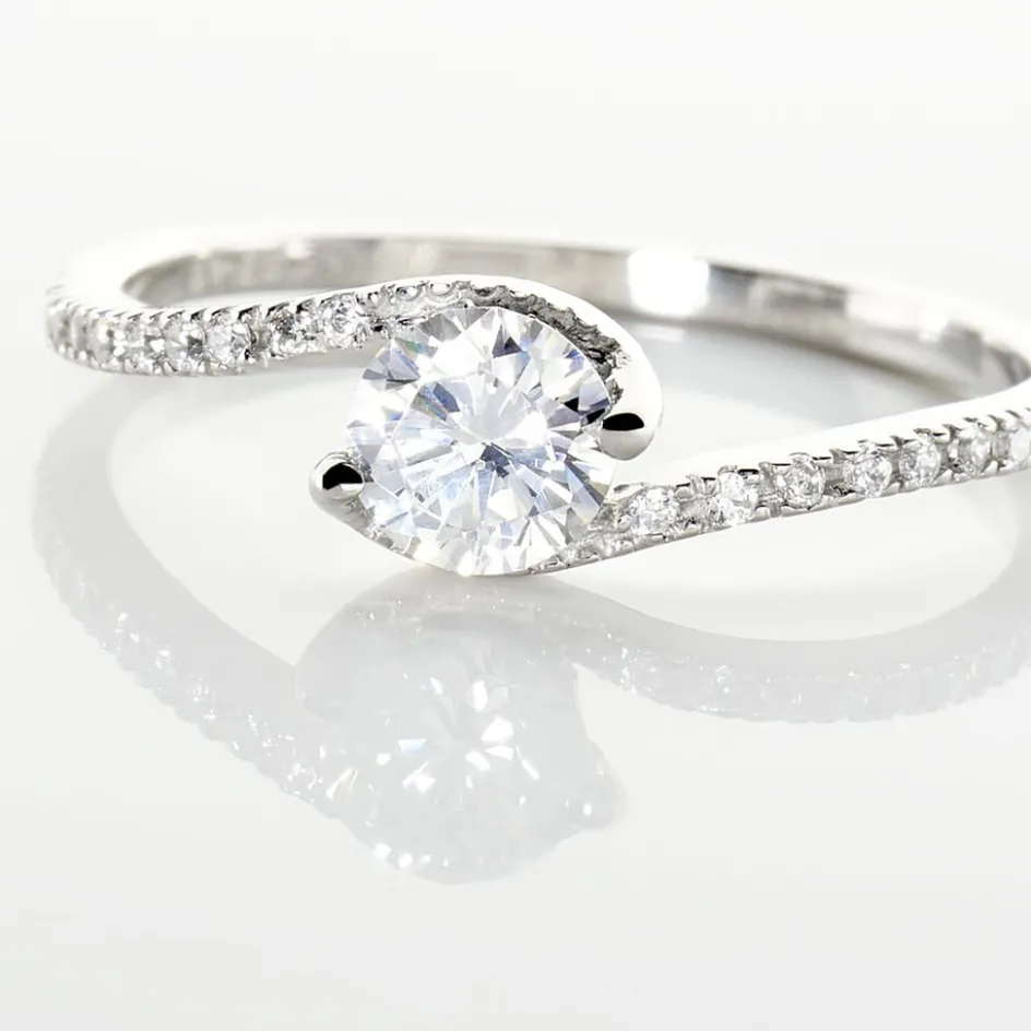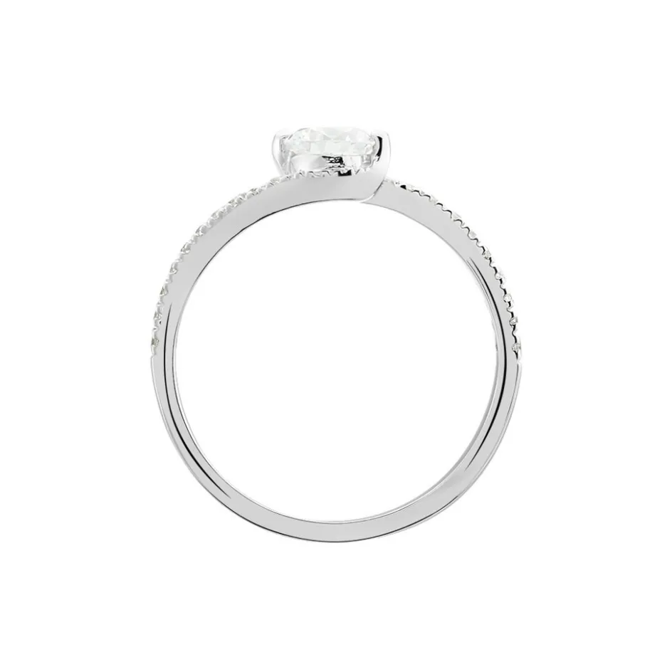 Bague Or Blanc 375/1000 »olly » Effet Vrille Oxyde De Zirconium Blanc Central Accompagnee Oxydes De Zirconium
