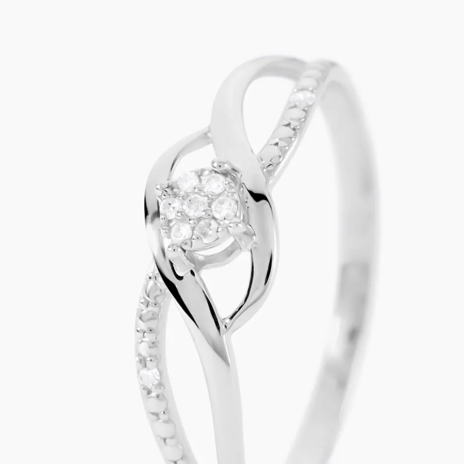 Bague Or Blanc 375/1000 Multipierres Diamants 0.045cts