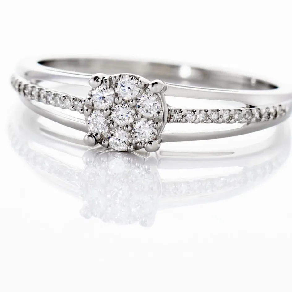 Bague Or Blanc 375/1000 Multipierres Accompagne Diamants 0.14cts