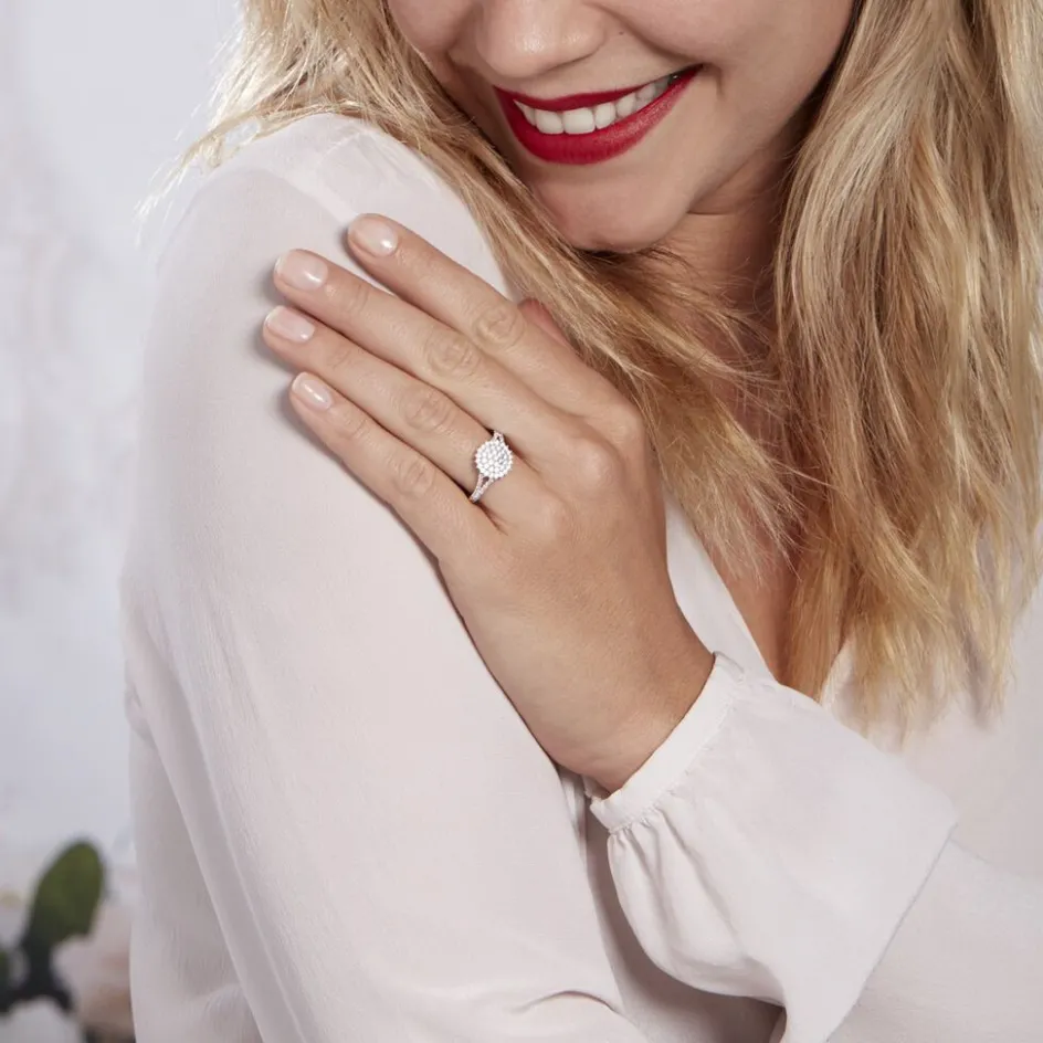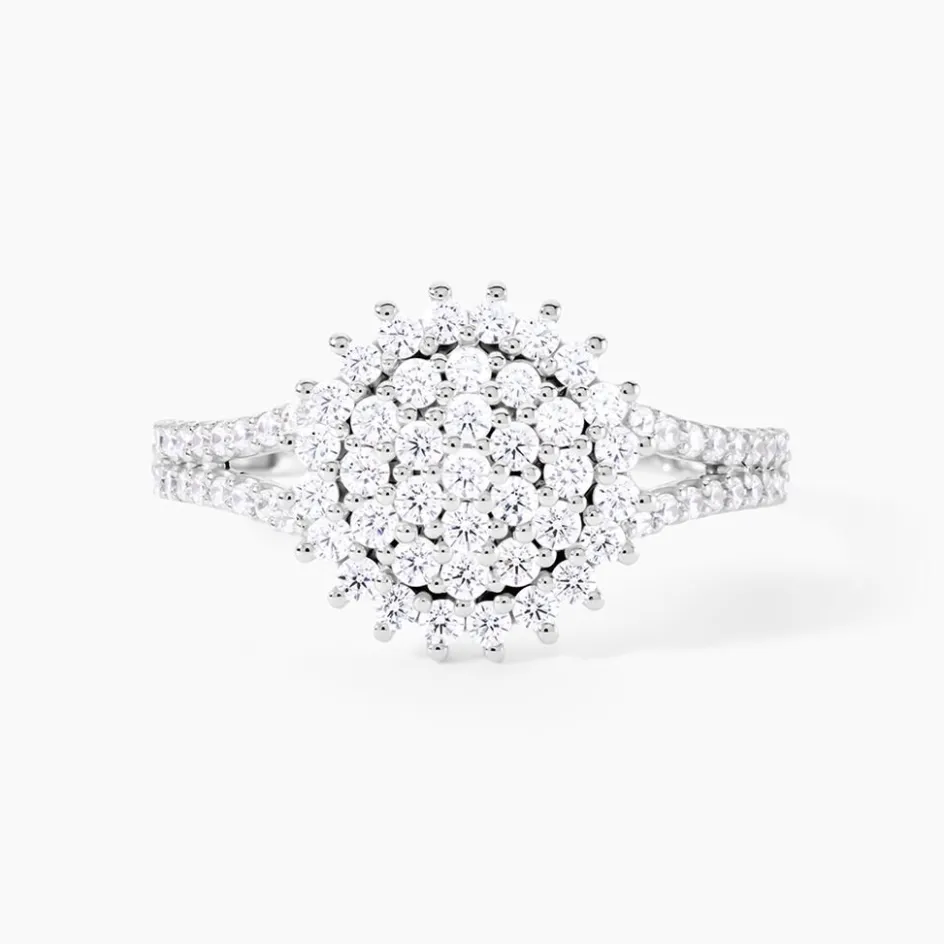 Bague Or Blanc 375/1000 Chou Oxydes De Zirconium Corps De Bague Double Accompagne Oxydes De Zirconium