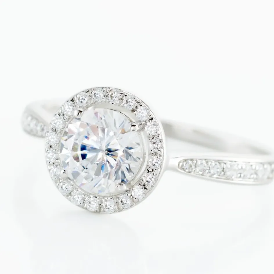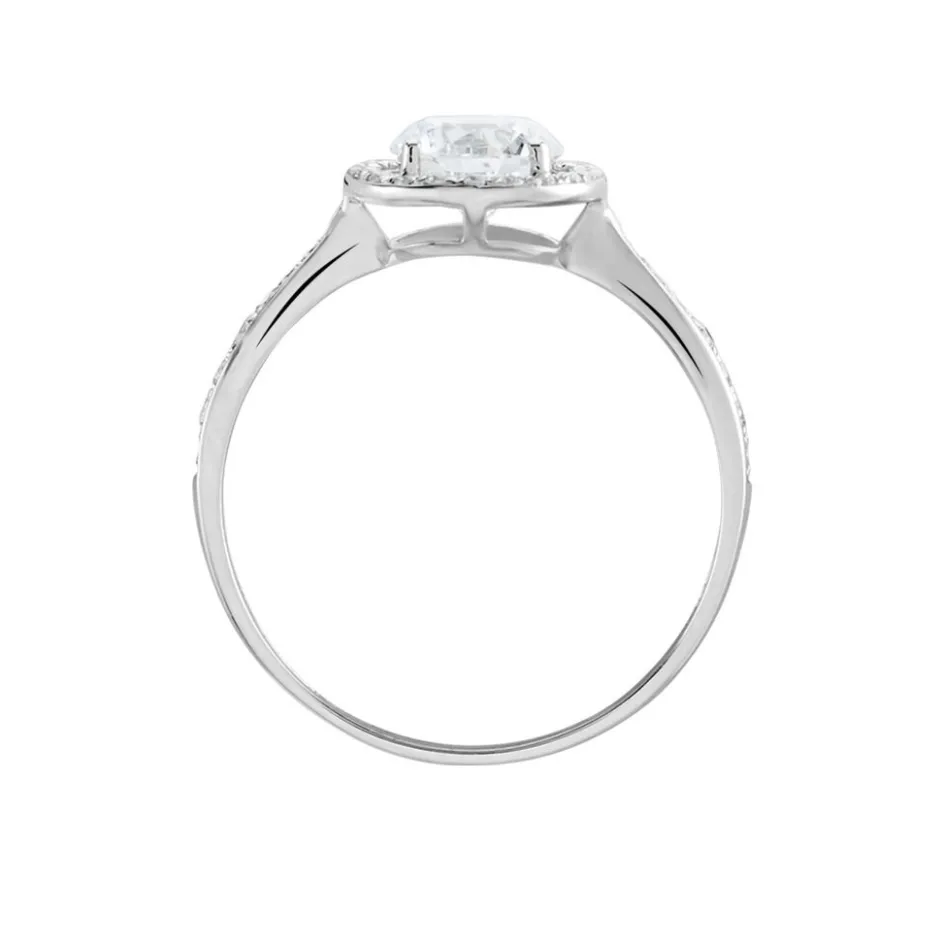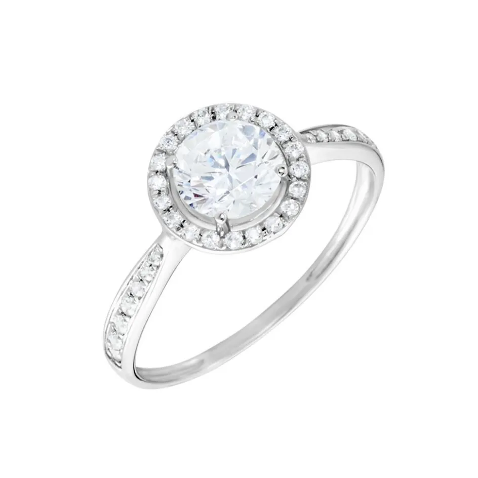 Bague Or Blanc 375/1000 Oxyde De Zirconium Serti Griffes 1.43cts Entourage