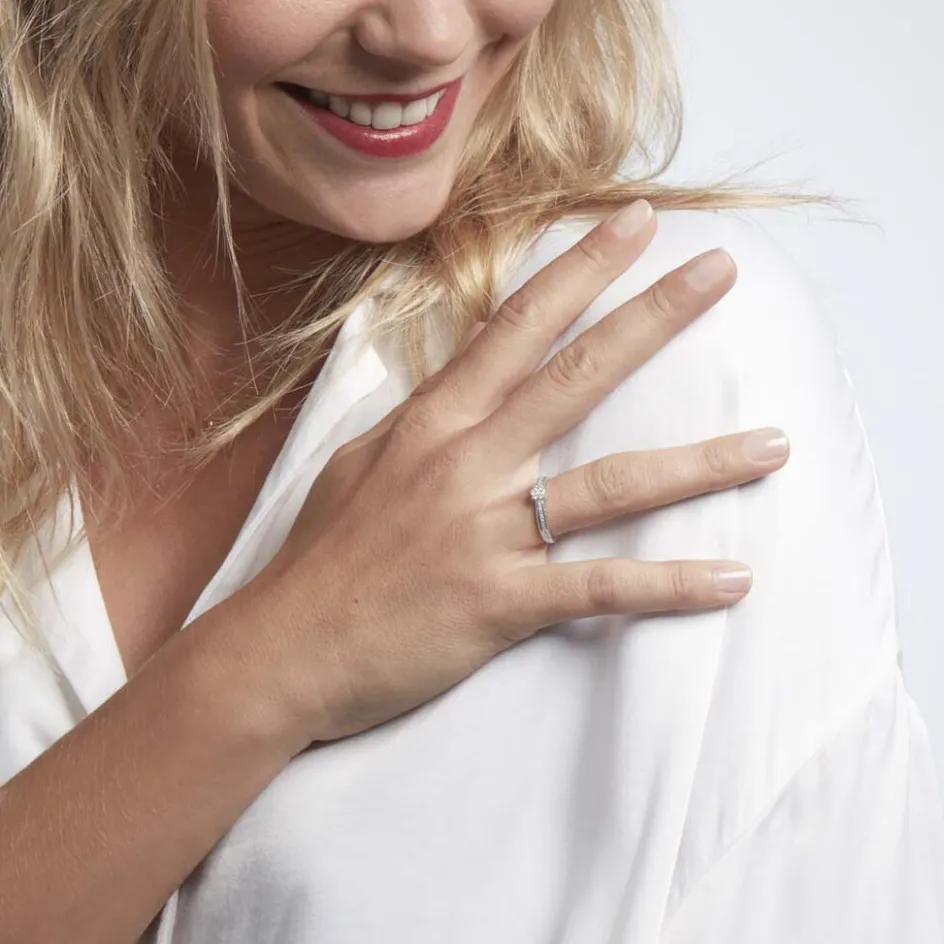 Bague Or Blanc 375/1000 Multipierre Accompagne Vrille Pavage Diamants
