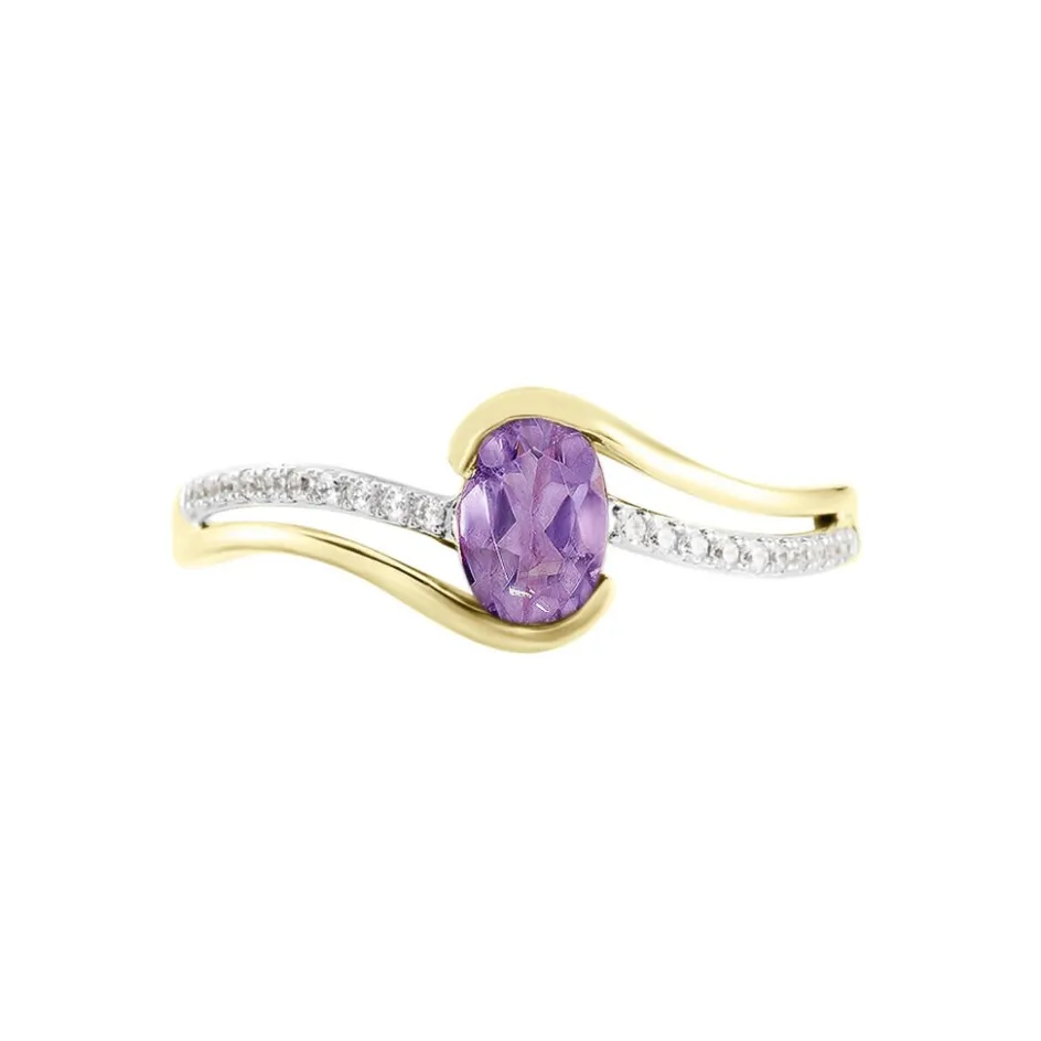 Bague Solitaire Accompagné Or Jaune 375/1000 Améthyste 0.36cts Serti Griffes