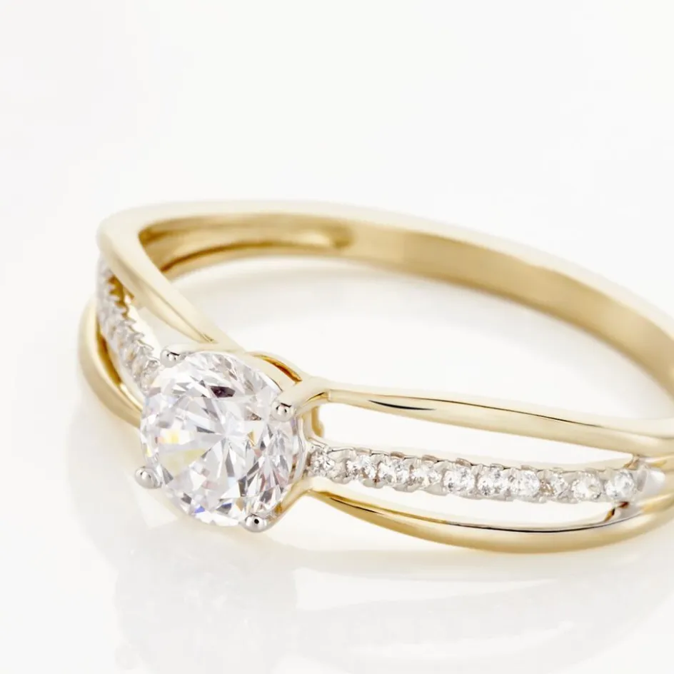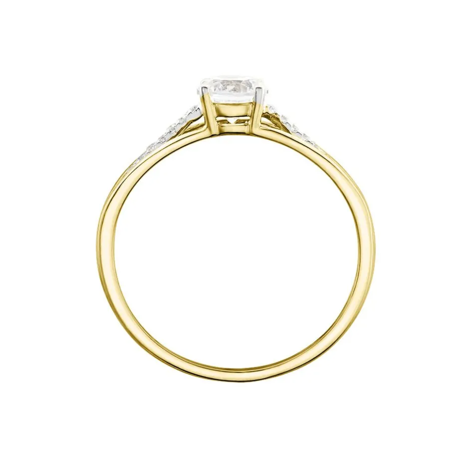 Bague Or Jaune 375/1000 Oxyde De Zirconium Central 0.9 Cts Serti Griffes Accompagne D’oxydes De Zirconium