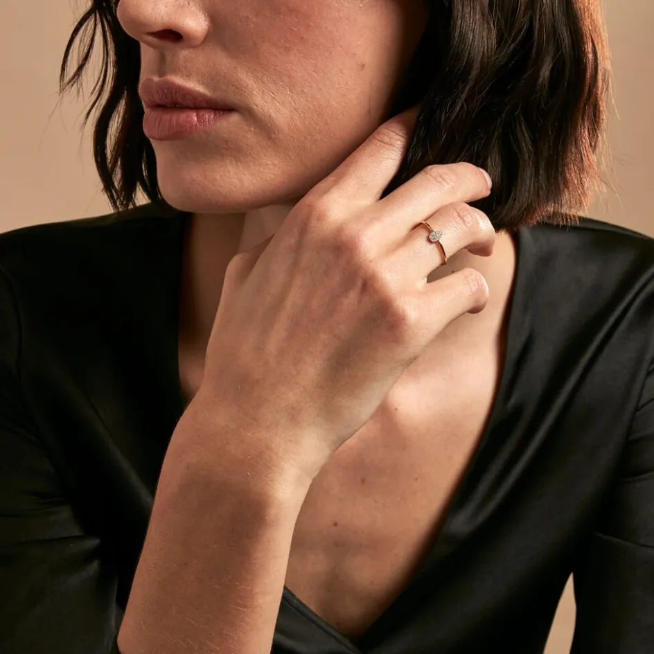 Bague Or Jaune 375/1000 Poire Pavage Diamants 0.0207cts