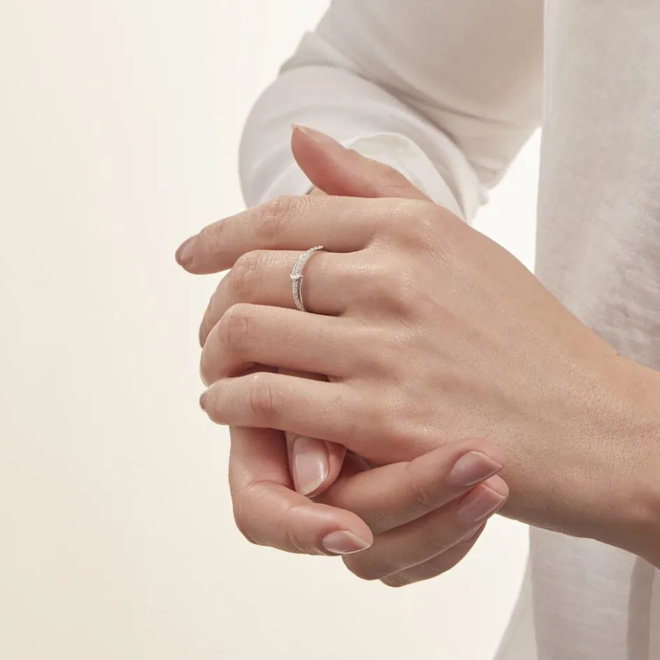 Bague Argent Blanc 925/1000 Croise Oxydes De Zirconium
