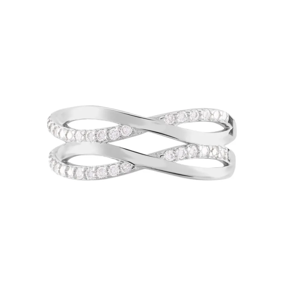 Bague Argent Blanc 925/1000 Tresses Entrelacees Avec Oxydes De Zirconium