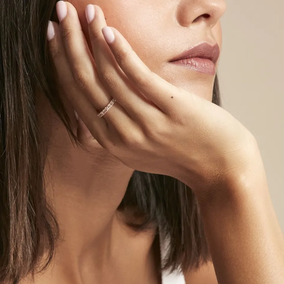 Bague Argent Rose 925/1000 Tour Complet Oxydes De Zirconium Champagne