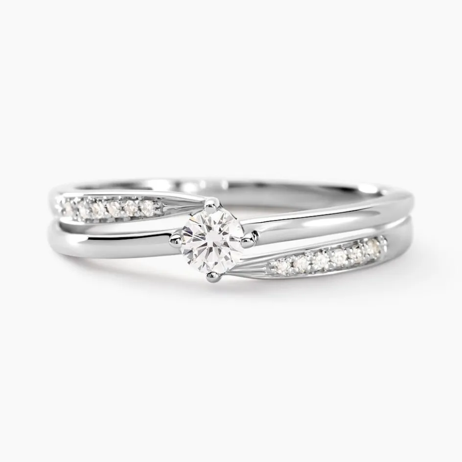 Bague Or Blanc 375/1000 Diamant 0.1cts Central Accompagne Diamants Effet Croise