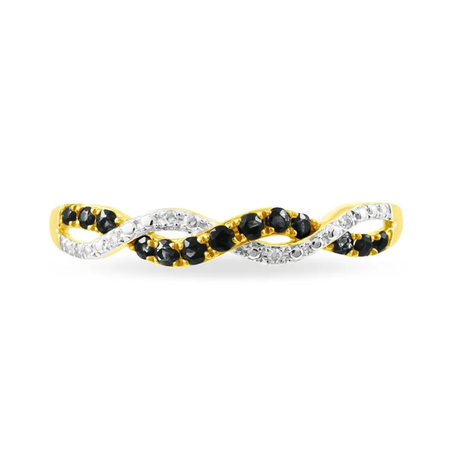 Bague Or Jaune 375/1000 Diamants Noirs Et Blancs