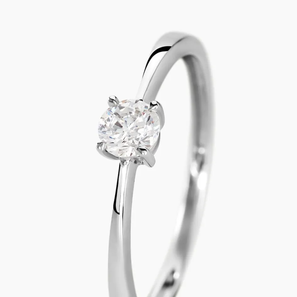 Bague Solitaire Or Blanc 375/1000 Oxydes De Zirconium Central Serti 4 Griffes