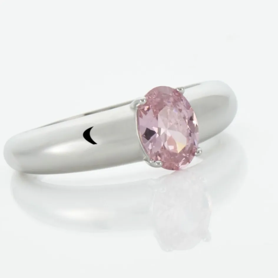 Bague Solitaire Argent 925/1000 Sertis Griffes Oxyde De Zirconium Rose Ovale