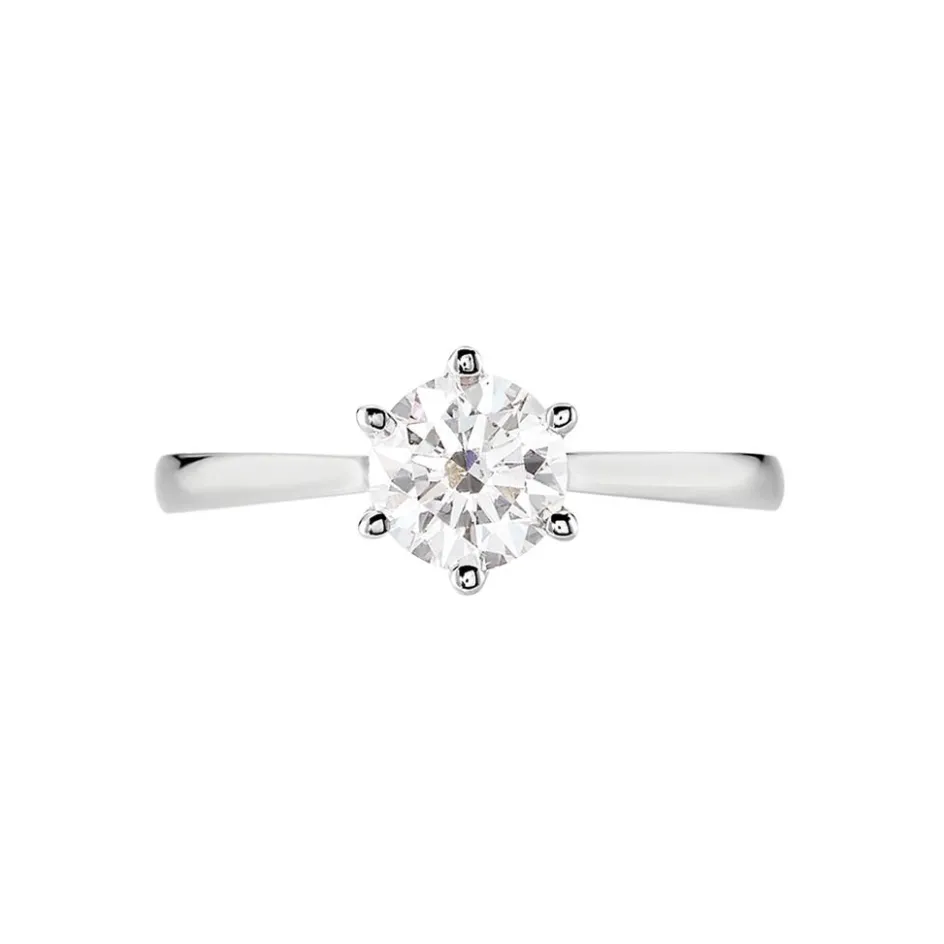 Bague Solitaire Or Blanc 750/1000 Diamant 1 Ct Serti 6 Griffes