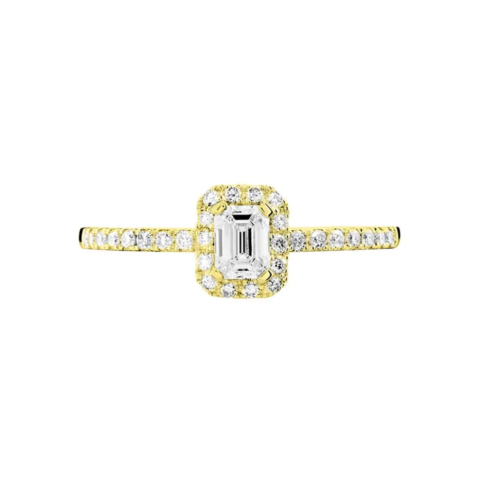 Solitaire Or Jaune 750/1000 Diamant Central 0.30cts Accompagne De Diamants