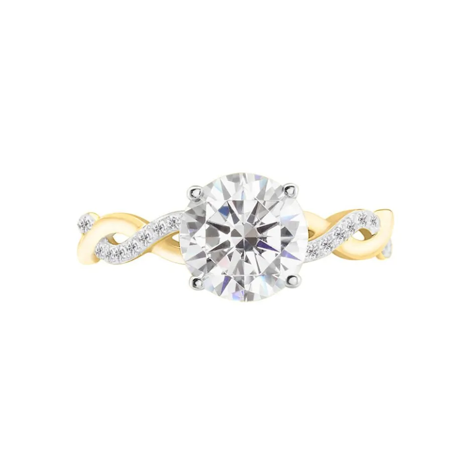 Solitaire Or Jaune 375/1000 Oxyde Central Et Corps De Bague Entrelace Accompagne Oxydes