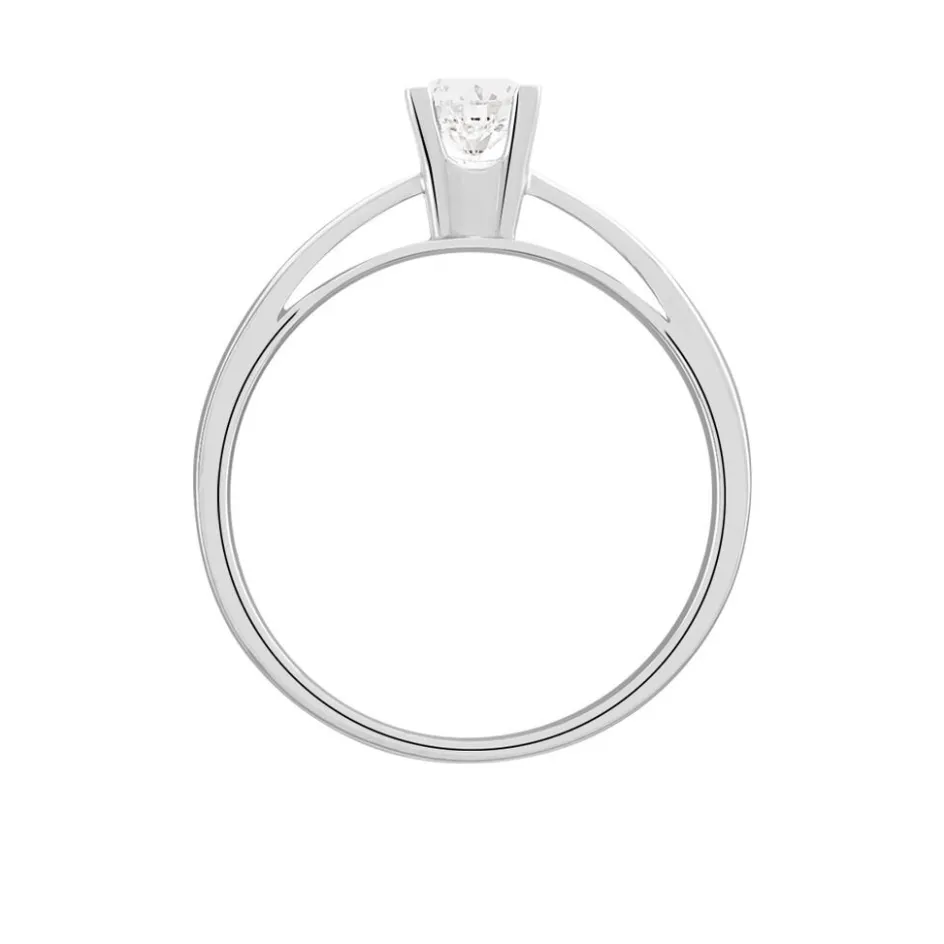 Solitaire Or Blanc 750/1000 Diamant 0.40 Ct Serti 4 Griffes