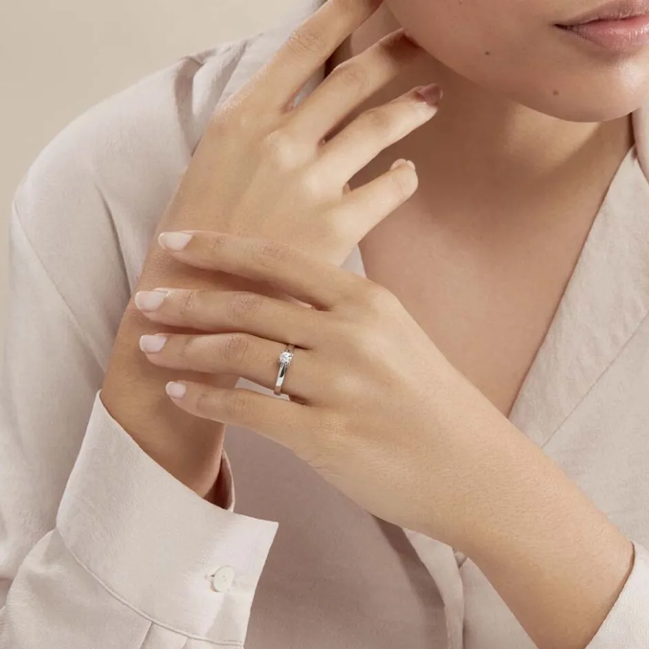 Solitaire Or Blanc 750/1000 Diamant 0.30ct Serti 4 Griffes