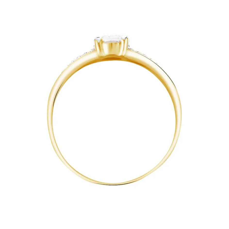 Solitaire Or Jaune 375/1000 Oxyde De Zirconium 4 Griffes Accompagne Corps De Bague 3 Rangs