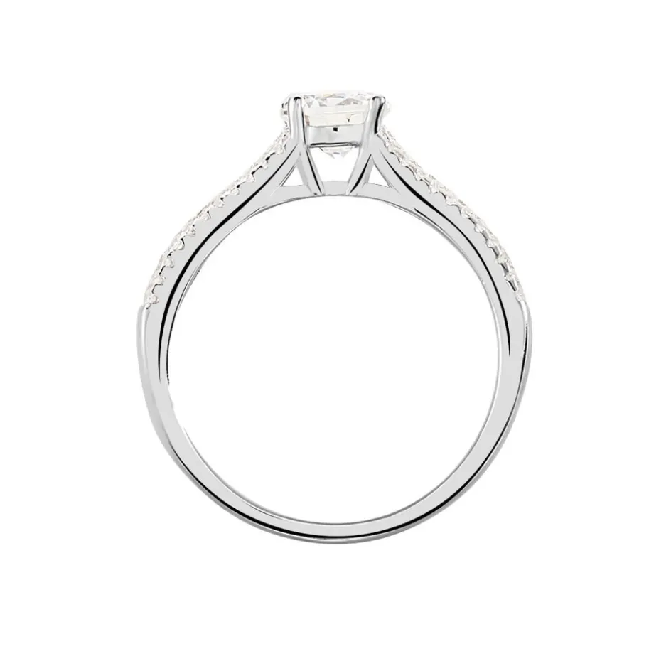 Bague Solitaire Argent Blanc 925/1000 4 Griffes Corps De Bague Oxydes De Zirconium