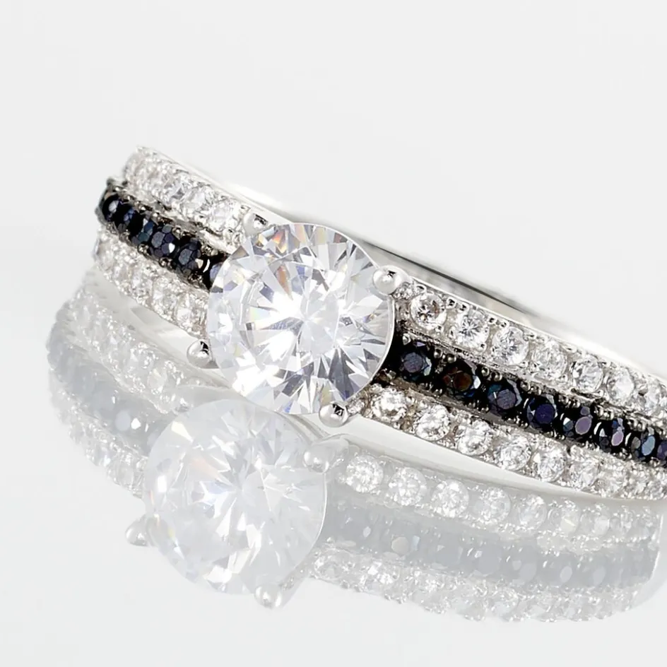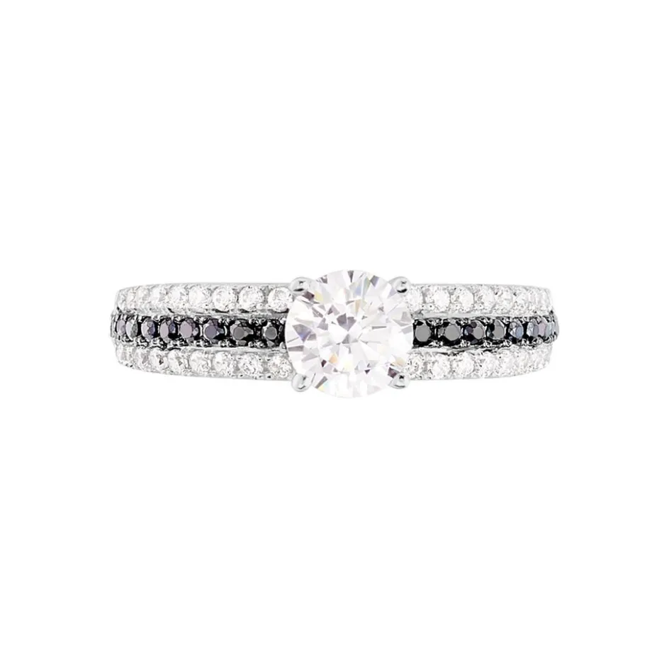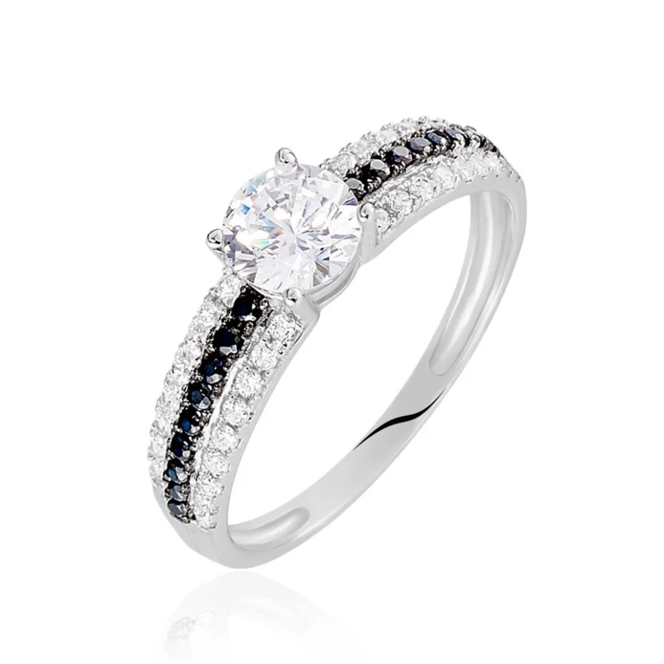 Solitaire Or Blanc 375/1000 Oxyde De Zirconium Central Corps De Bague Oxydes De Zirconium Blancs Et Noirs
