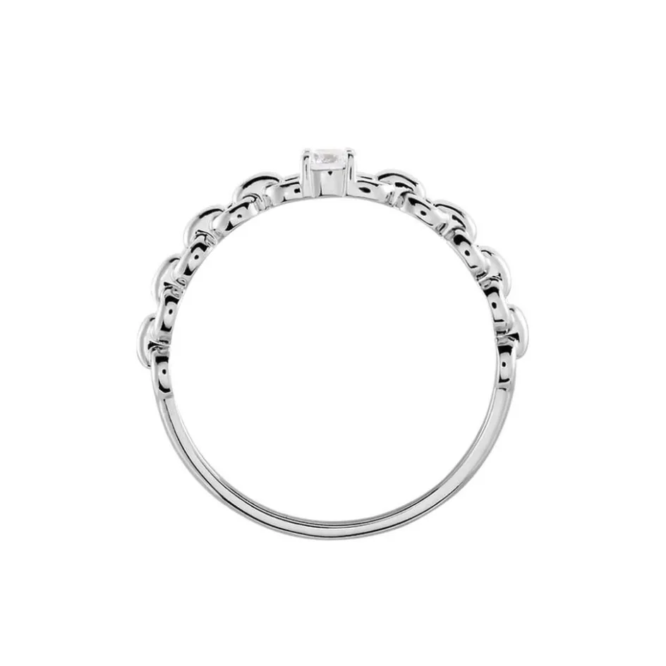 Bague Solitaire Argent Blanc 925/1000 Maillons Micro Setting Oxyde De Zirconium