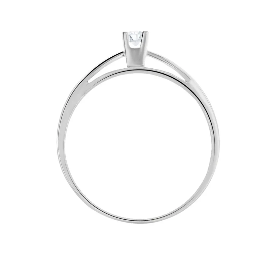 Bague Solitaire Or Blanc 375/1000 Diamant 0.1cts Serti 4 Griffes