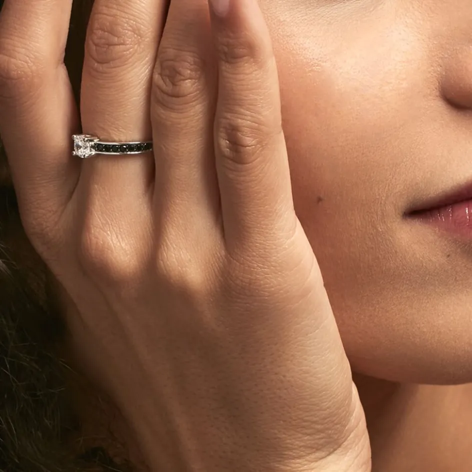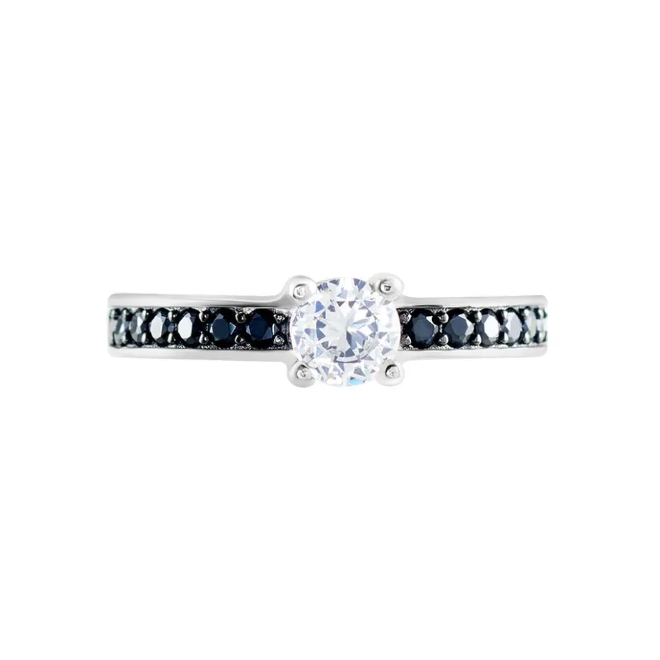 Bague Solitaire Argent Blanc 925/1000 Oxyde De Zirconium Accompagnee Oxydes De Zirconium Noirs