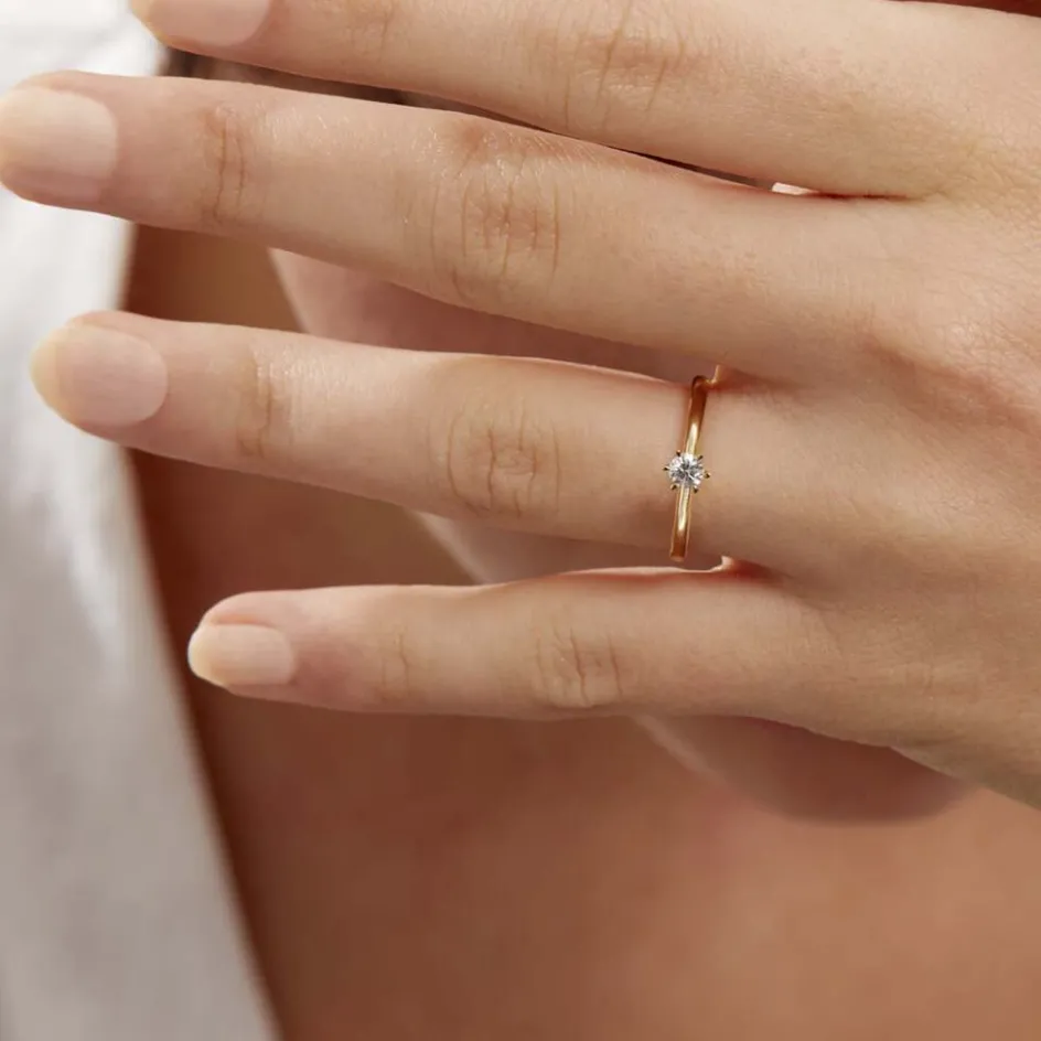 Solitaire Or Jaune 750/1000 Diamant 0.15ct Serti 6 Griffes