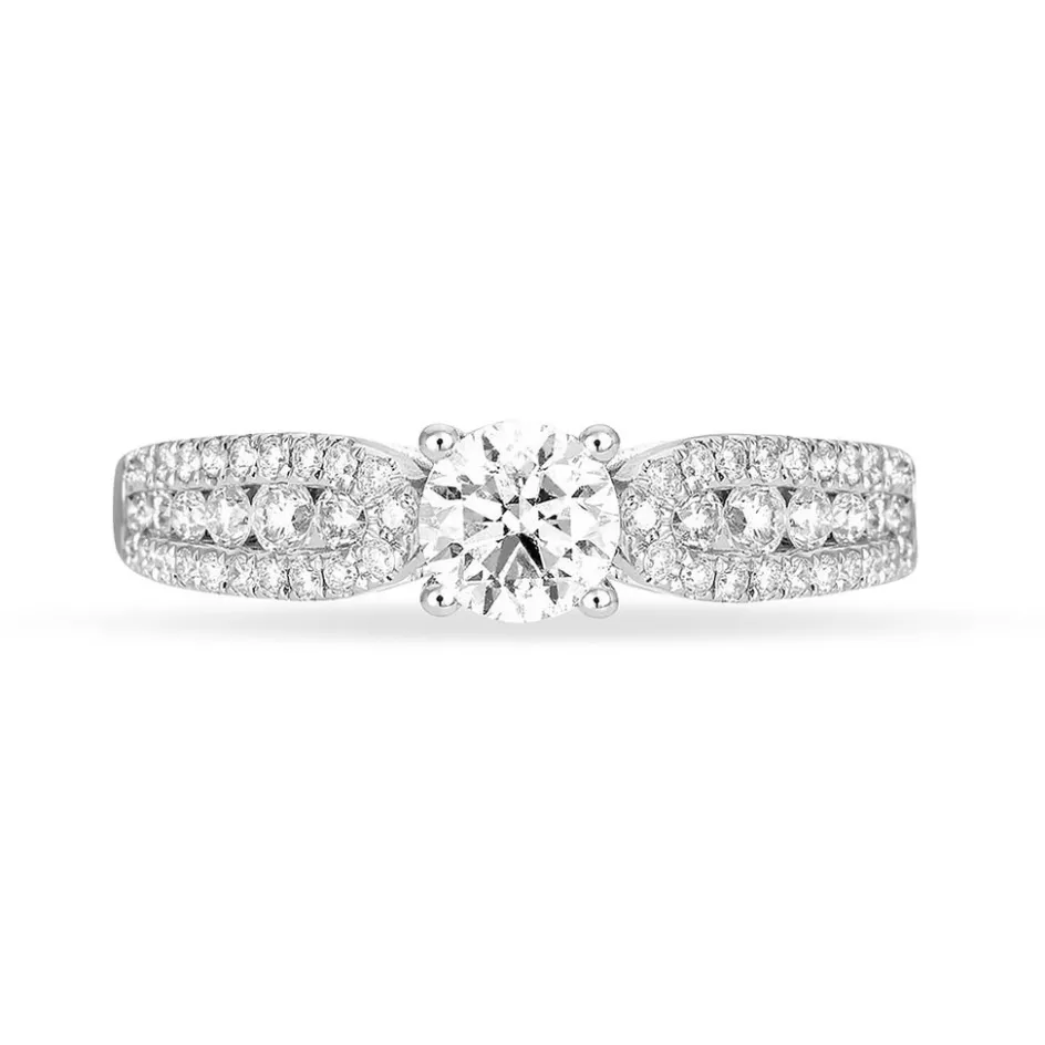Solitaire Or Blanc 375/1000 Pierre De Centre 0.50ct Accompagne Diamants