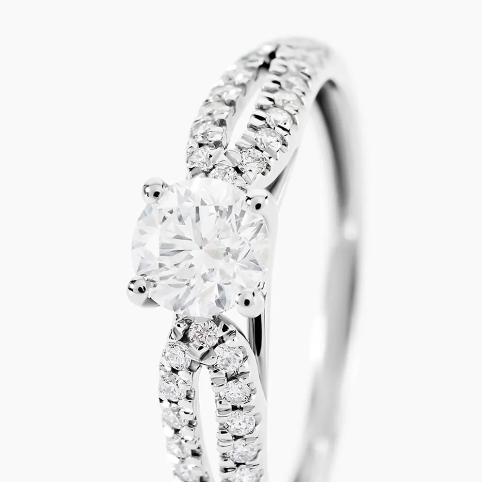 Bague Solitaire Platine 950/1000 Diamant Central 0.50ct Serti Griffes Accompagne Diamants