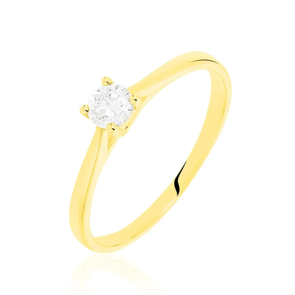 Solitaire Or Jaune 375/1000 Diamant 0.20cts Serti 4 Griffes