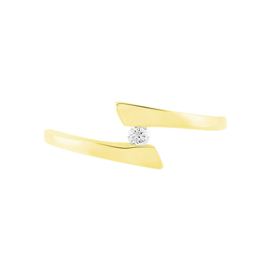 Solitaire Or Jaune 375/1000 Style Couteau Diamant 0.05cts Central