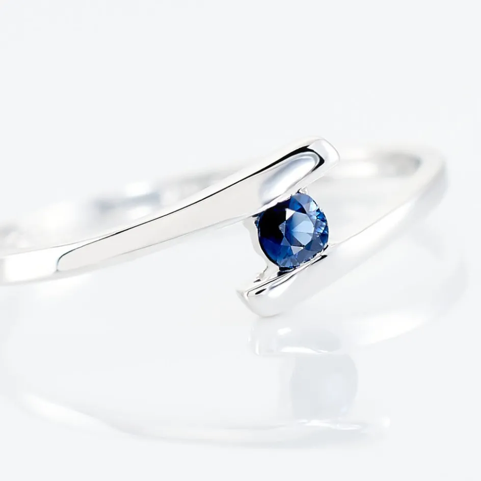 Bague Or Blanc 375/1000 Saphir Rond Serti Couteau