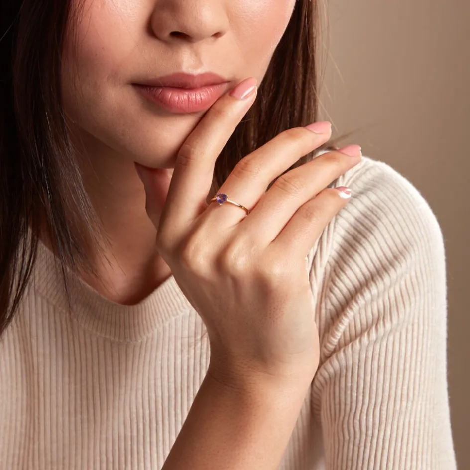 Bague Or Jaune 375/1000 C艙ur Amethyste Serti Griffes