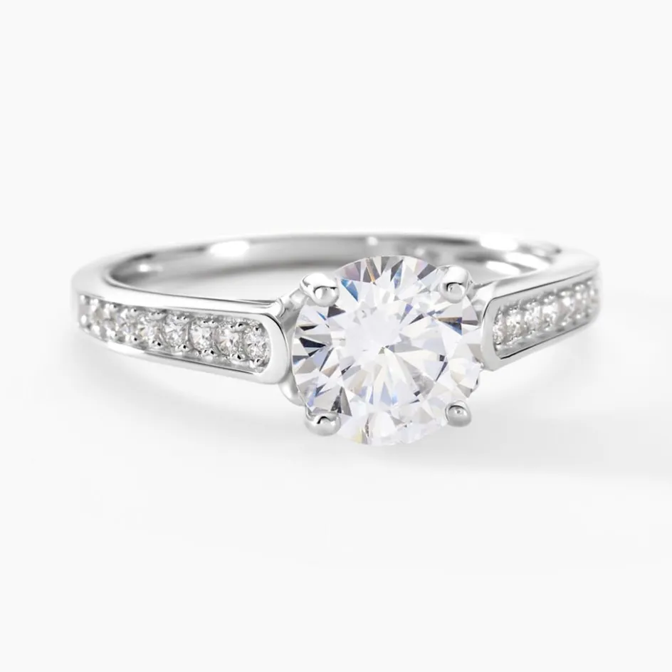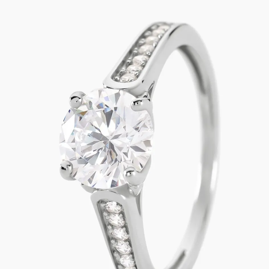 Bague Argent Blanc 925/1000 Oxyde De Zirconium Central Serti Griffes Accompagnee Oxydes De Zirconium