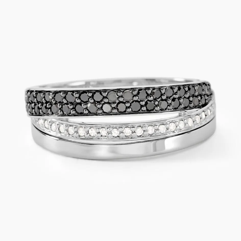 Bague Or Blanc 375/1000 Pavage Diamants Blancs Et Diamants Noirs