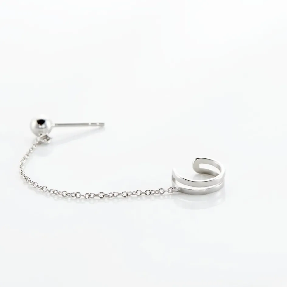 Bijou D’oreille Unitaire Argent Blanc 925/1000 Bague D’oreille Ajustable Et Puce Boule Maille Forcat