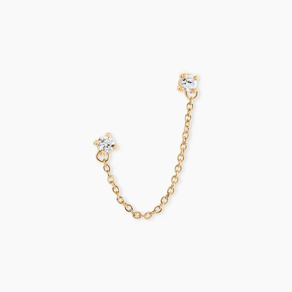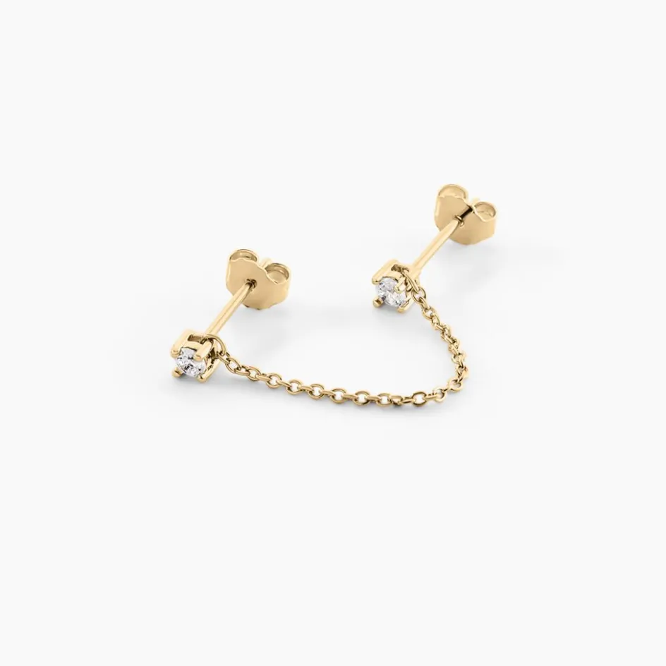 Bijoux D’oreille Unitaire Plaque Or Jaune 2 Oxydes De Zirconium Sertis Griffes Et Chaine
