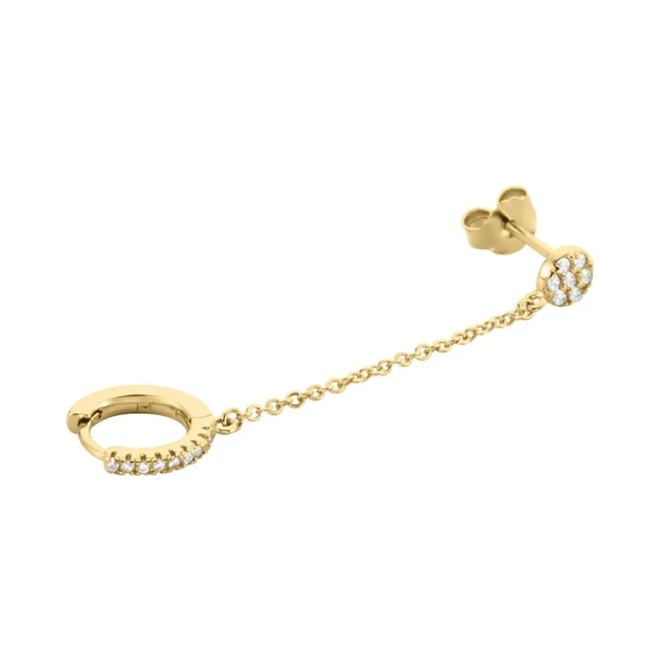 Bijou D’oreille Unitaire Plaqué Or Pastille Et Créole Pavage Oxydes De Zirconium Diamètre 12mm