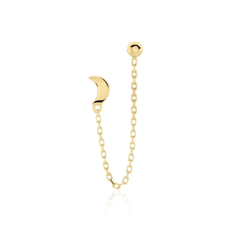 Bijou D’oreille Unitaire Plaque Or Jaune Lune Et Clou D’oreille Maille Forcat 4cm