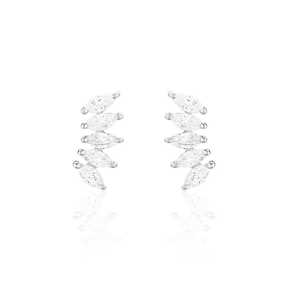 Bijoux D’oreilles Or Blanc 375/1000 Oxydes De Zirconium Forme Marquise