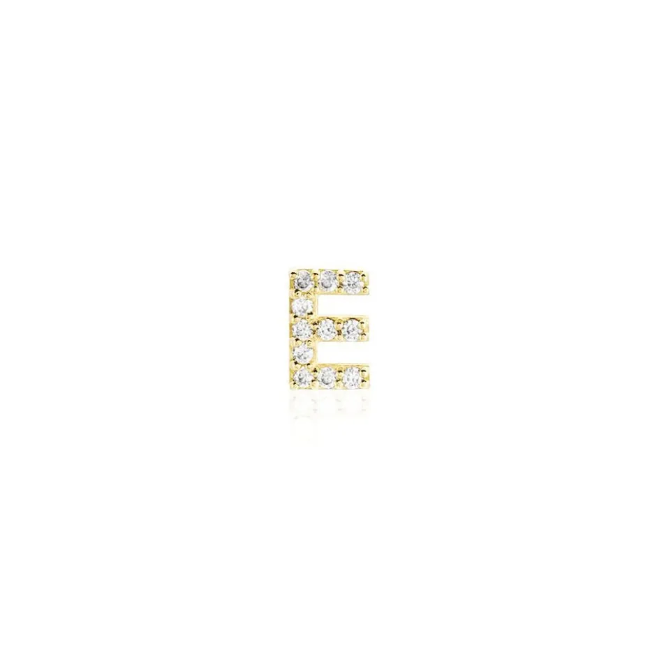 Boucle D’oreille Puce Unitaire Or Jaune 375/1000 Lettre E Oxydes De Zirconium